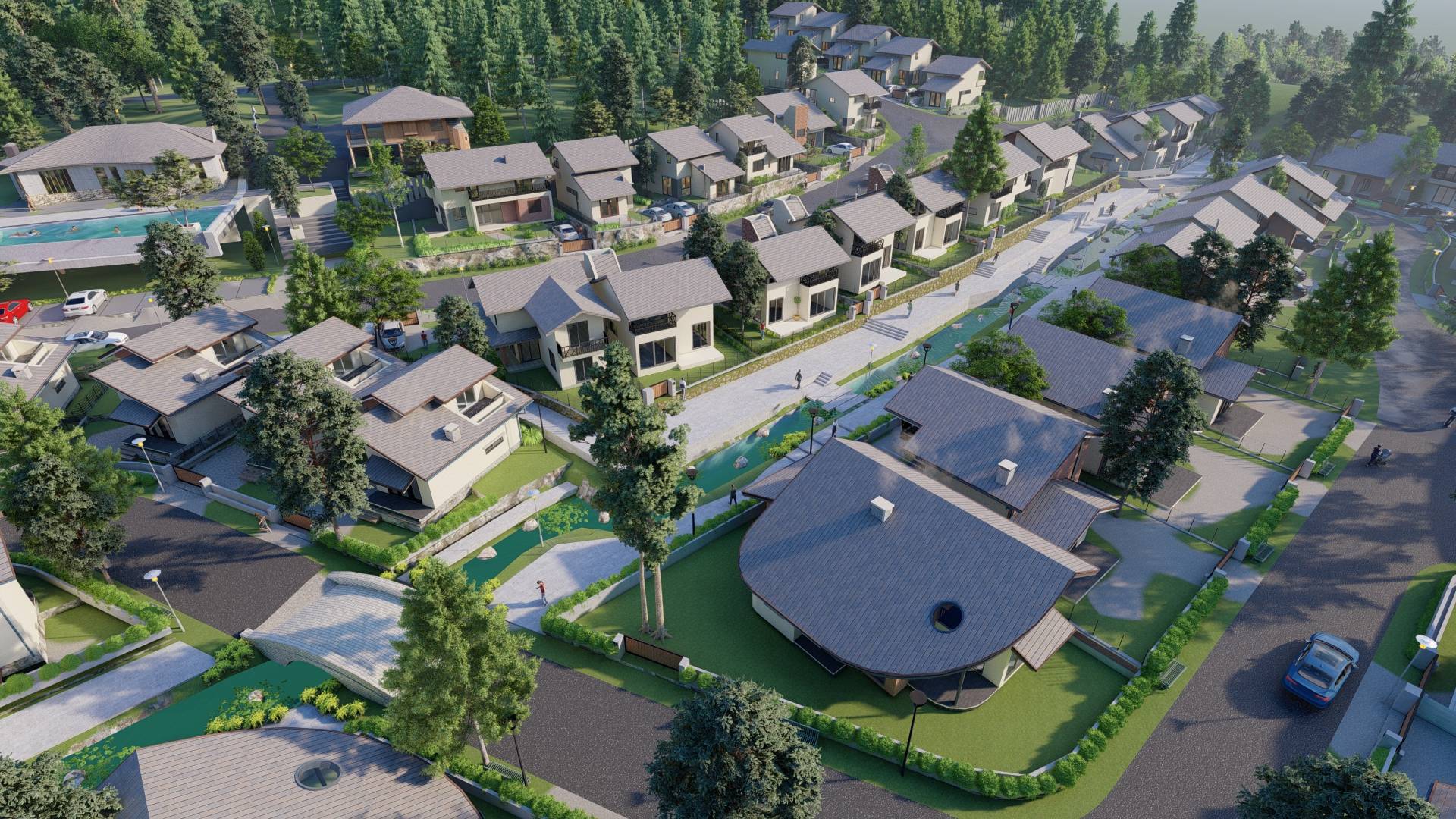 Houses and facilities are built in natural clusters with careful space awareness for both private compounds and as a whole estate.Each house is designed and built luxuriously and meticulously with high quality of built.